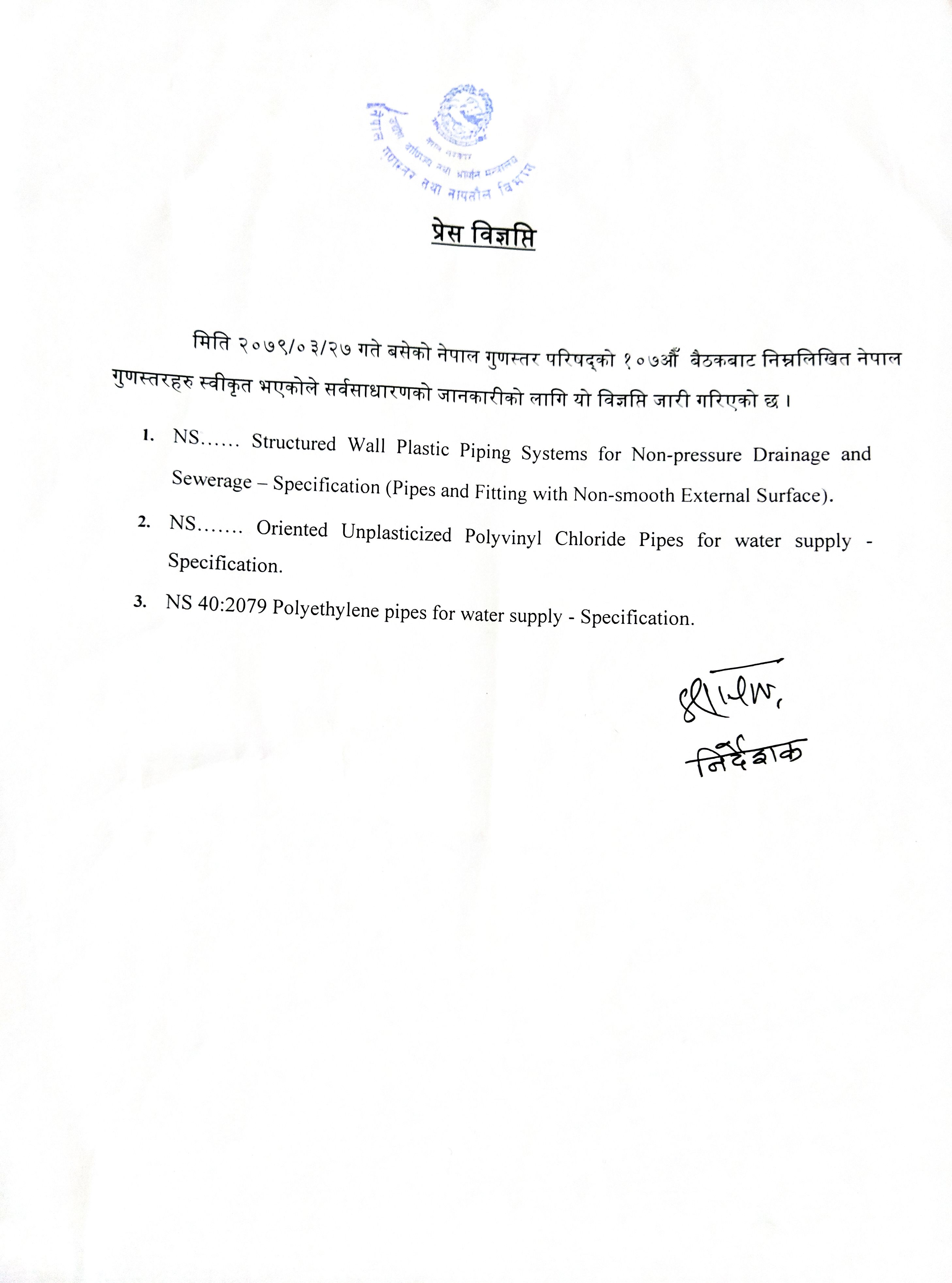 गुणस्तर तथा नापतौल कार्यालय काठमाण्डौकाे प्रेस विज...
